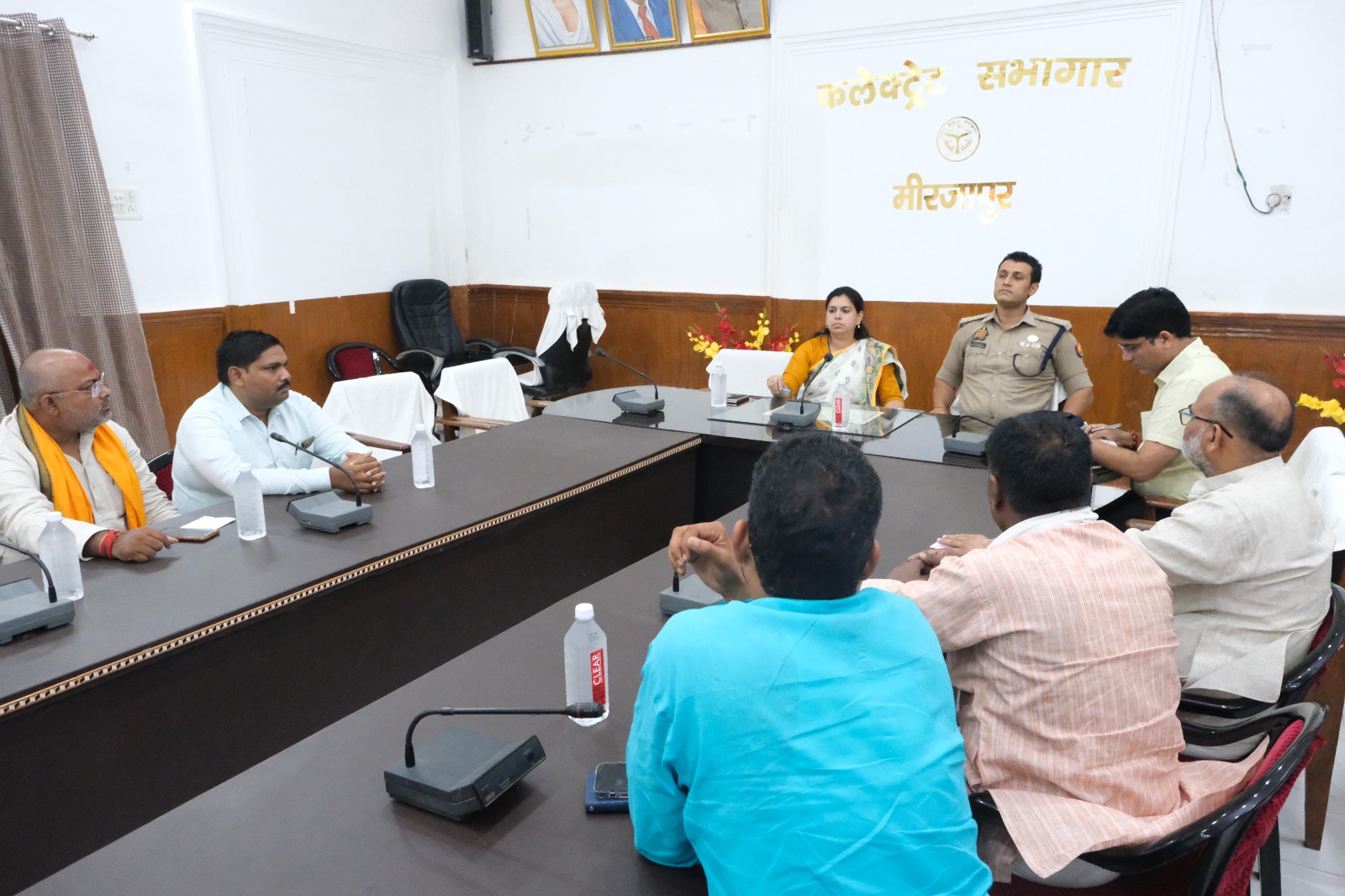 मीरजापुर | जिलाधिकारी दिव्या मित्तल व पुलिस अधीक्षक संतोष कुमार मिश्र ने कलेक्ट्रेट सभागार में जनपद के जन प्रतिनिधिगण के साथ बैठक कर विभिन्न बिन्दुओं पर चर्चा की गयी। बैठक में जन प्रतिनिधिगण के द्वारा बताया गये समस्याओं व सुझावों को सुनते हुये आवश्यक कार्यवाही हेतु सम्बन्धित अधिकारियों को निर्देशित किया गया। जिलाधिकारी दिव्या मित्तल ने कहा कि जन प्रतिनिधिगण के द्वारा अवगत कराये गये समस्याओं व सुझावो पर प्राथमिकता पर अमल करते हुये निस्तारण सुनिश्चित कराया जायेगा। इस अवसर पर जिला अध्यक्ष अपना दल एस इंजी0 राम लौटन बिन्द, सांसद अनुप्रिया पटेल के प्रतिनधि उदय पटेल, सांसद राज्य सभा अरूण सिंह के प्रतिनिधि धंनजय पाण्डेय अन्य जन प्रतिनिधिगण व अपर जिलाधिकारी वि0/रा0 शिव प्रताप शुक्ल उपस्थित रहें।