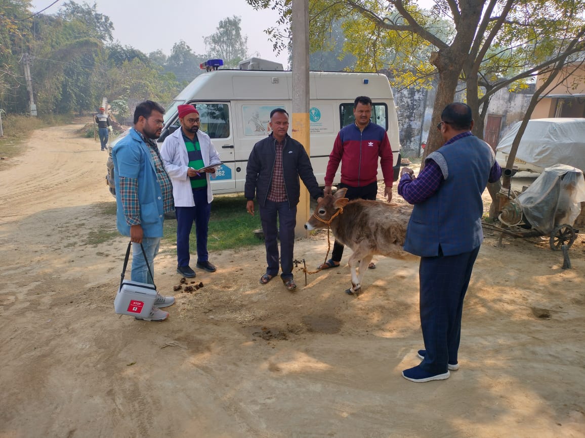 परसपुर गोंडा : परसपुर विकास खण्ड अन्तर्गत ग्राम पंचायत धनौरा में पशुपालन विभाग द्वारा संचालित एम्बुलेंस 1962 की टीम द्वारा खुरपका मुंहपका बीमारी के बचाव हेतु टीकाकरण किया गया। जिसमें सैकड़ों पशुओं का टीकाकरण किया गया। इस टीकाकरण अभियान में डाक्टर हेमंत सिंह अपने सहयोगियों के साथ पशुपालकों के घर पर जाकर टीकाकरण किया।
